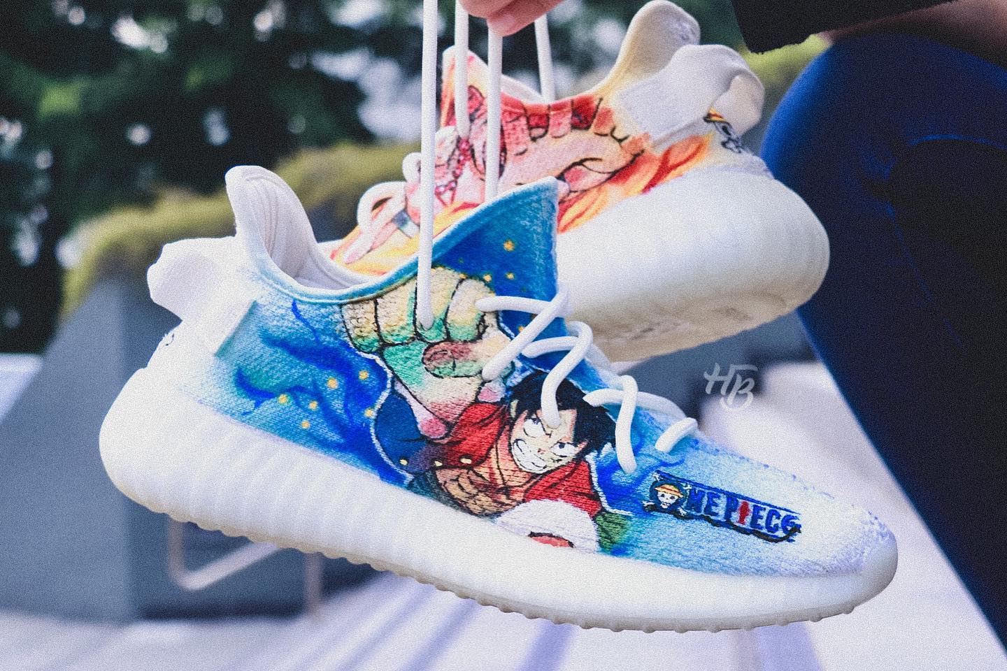 Full one-piece characters on a pair of white Yeezys. Hours melting into the night. $300 a pair. The kind of work that took everything.